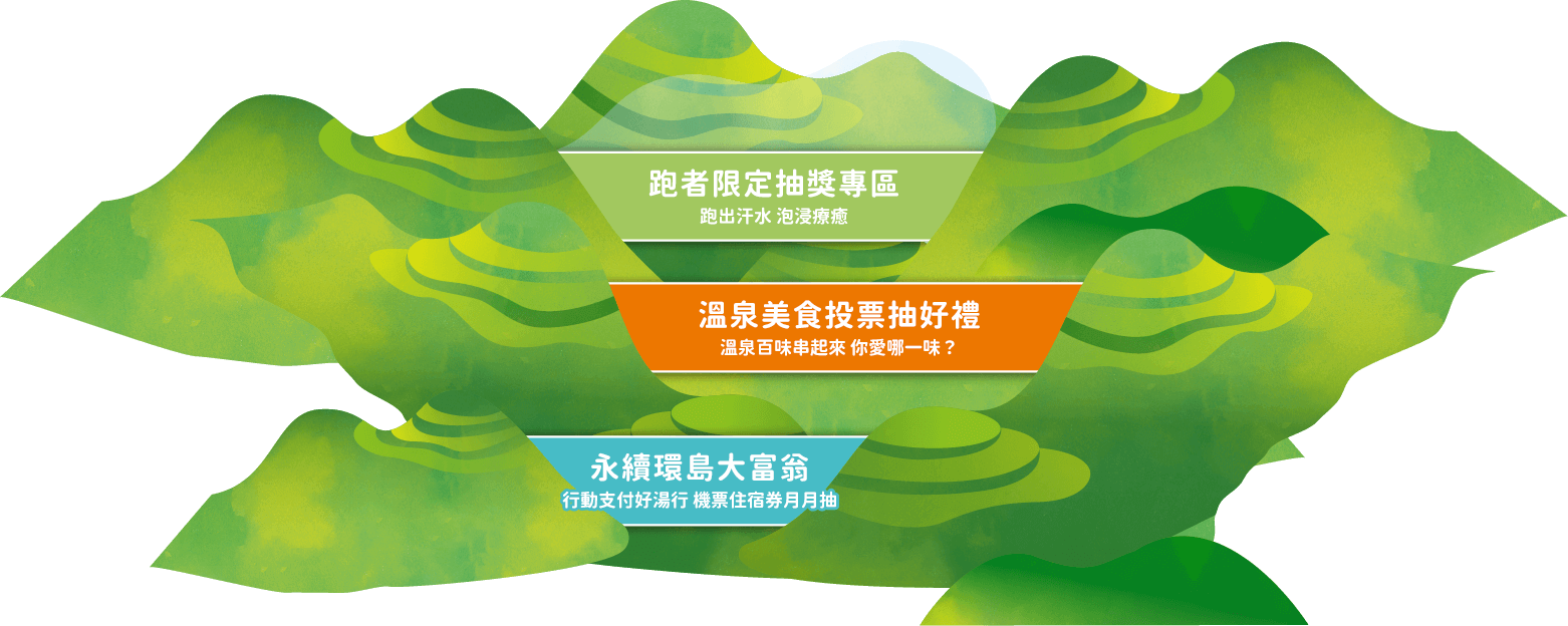 凡於活動期間,參加全國賽會網站中所刊登的路跑賽事(以網站刊登公告為主https://docs.google.com/spreadsheets/d/14PcbVQlbFJW8LuWkTPu8O49D6hTVGOCH/edit?gid=1976210276#gid=1976210276),並上傳清楚印有參賽者姓名之路跑證/參賽證/號碼牌或完賽證等照片,及填寫抽獎資料(需與上傳照片姓名一致),即可獲得溫泉星級飯店/好客民宿住宿券抽獎機會。